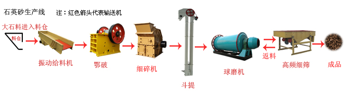 這套生產(chǎn)線有振動(dòng)給料機(jī)、顎式破碎機(jī)、細(xì)碎機(jī)、球磨機(jī)、提升機(jī)、振動(dòng)篩和皮帶輸送機(jī)等設(shè)備組合而成。