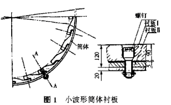 銅礦選礦產(chǎn)現(xiàn)有2臺φ3.2m×3.1m格子型球磨機,均為1959年投入使用的格子型球磨機,目前,這倆臺格子型球磨機年處理礦石35~40萬t(較多年處理量曾達60萬t以上),在簡體橫斷面上,沿筒體圓周有24塊小波形襯板一塊壓著一塊,格子型球磨機每塊用2只M36螺釘與筒體固定,相鄰倆塊在筒體長度方向上的間隙錯開,格子型球磨機通過長期對其使用和失效情況的考察發(fā)現(xiàn),失效報廢幾乎都是因螺釘松動引起格子型球磨機筒體漏砂。