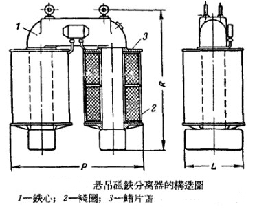 球磨機運轉中所用的懸吊磁鐵分離器則主要由一些馬蹄形的鐵心構成,其上繞有線圈,而下段裝有的端部。經(jīng)過此設備分離出來的金屬塊會在人工作用除去,具體結構如下: